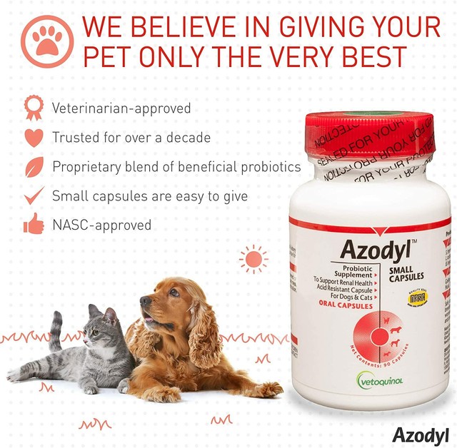 .Azodyl is a nutritional supplement for cats and dogs supporting renal function. Azodyl for dogs and cats is suitable for pets of all sizes who need extra kidney health support.
